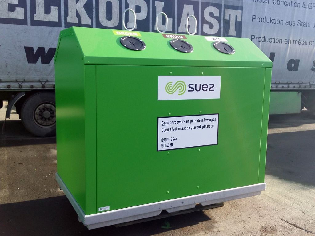 Ściany wykonane są z blachy ocynkowanej, a rama nośna jest ocynkowana ogniowo. Cały kontener malowany jest wysokiej jakości dwuskładnikową powłoką ochronną w kolorze z palety RAL. Wrzuty są rozmieszczone po przeciwnych stronach pojemnika (szkło/papier) oraz zabezpieczone są gumowymi elementami..