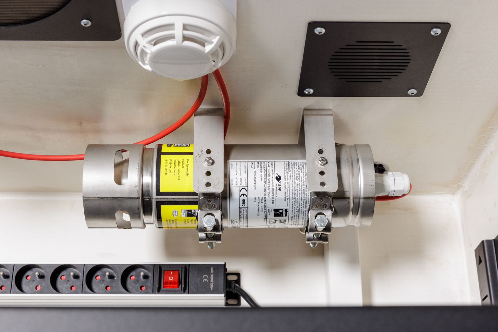 Aerosol se rychle rozšíří po celé skříni, ochlazuje baterii a kontroluje požár