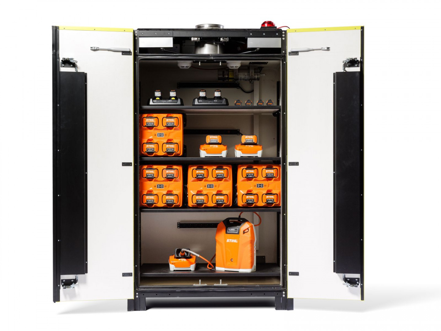 Úložná a nabíjecí skříň je navržena pro bezpečné skladování a nabíjení lithium-iontových baterií v interiéru. Primárně je určena pro baterie z elektrických kol, e-koloběžek, ručního/zahradního nářadí, dronů a vysílaček.